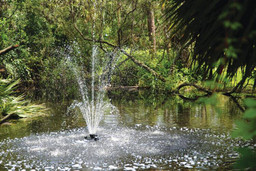 Oase’s Floating Fountains offer economical shallow water aeration with an attractive visual display. The Floating Fountain with Lights are compact, reliable, energy efficient and come complete and ready to connect right out of the box! They are designed for use in smaller water features with a minimum depth of 30". The included lighting package brings the various water patterns to life after dark. With 3 nozzle attachments to choose from; Trumpet, Single Tier and 3-Tier, you’ll be amazed both day and night! With a tool-less volute removal, it makes maintenance fast and easy! The Floating Fountain with Lights includes a pump, float body, mooring lines, pump shield, stainless steel mooring anchors, lights and 3 nozzles.