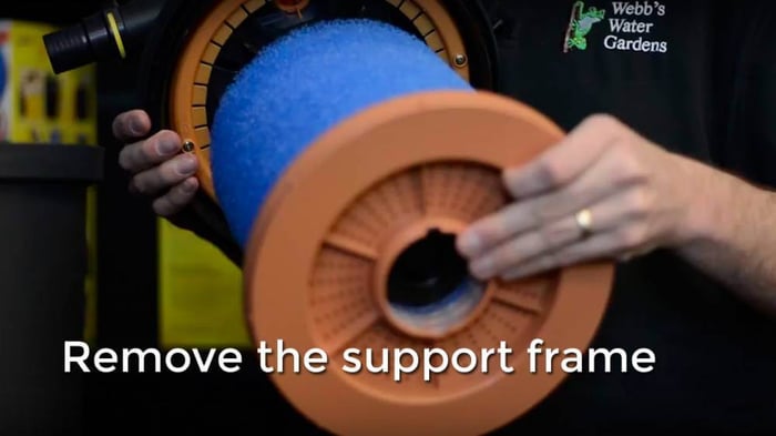 4. You now have access to the foam filters. Pull up and remove the support frame.