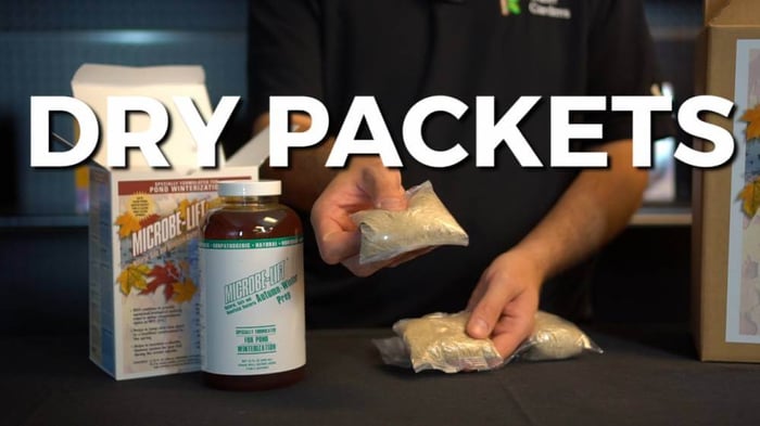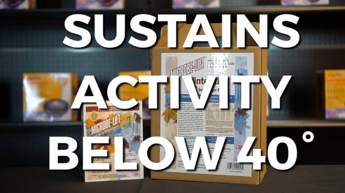 During the season your pond may accumulate debris – leaves, twigs, etc. Microbe-Lift Autumn/Winter Prep is a cold-weather bacteria that helps accelerate the decomposition of those leaves and other organics during the fall and winter months. It's a two-part system of liquid bacteria and dry, water soluble packets containing a blend of cellulase enzymes and bacteria.