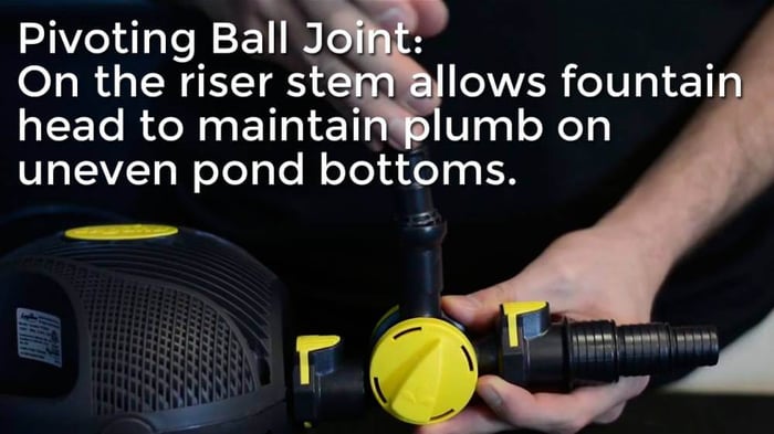 Pivoting Ball Joint: On the riser stem allows fountain head to maintain plumb on uneven pond bottoms.