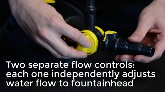 Two separate flow controls: each one independently adjusts water flow to fountainhead and waterfall, if possible.